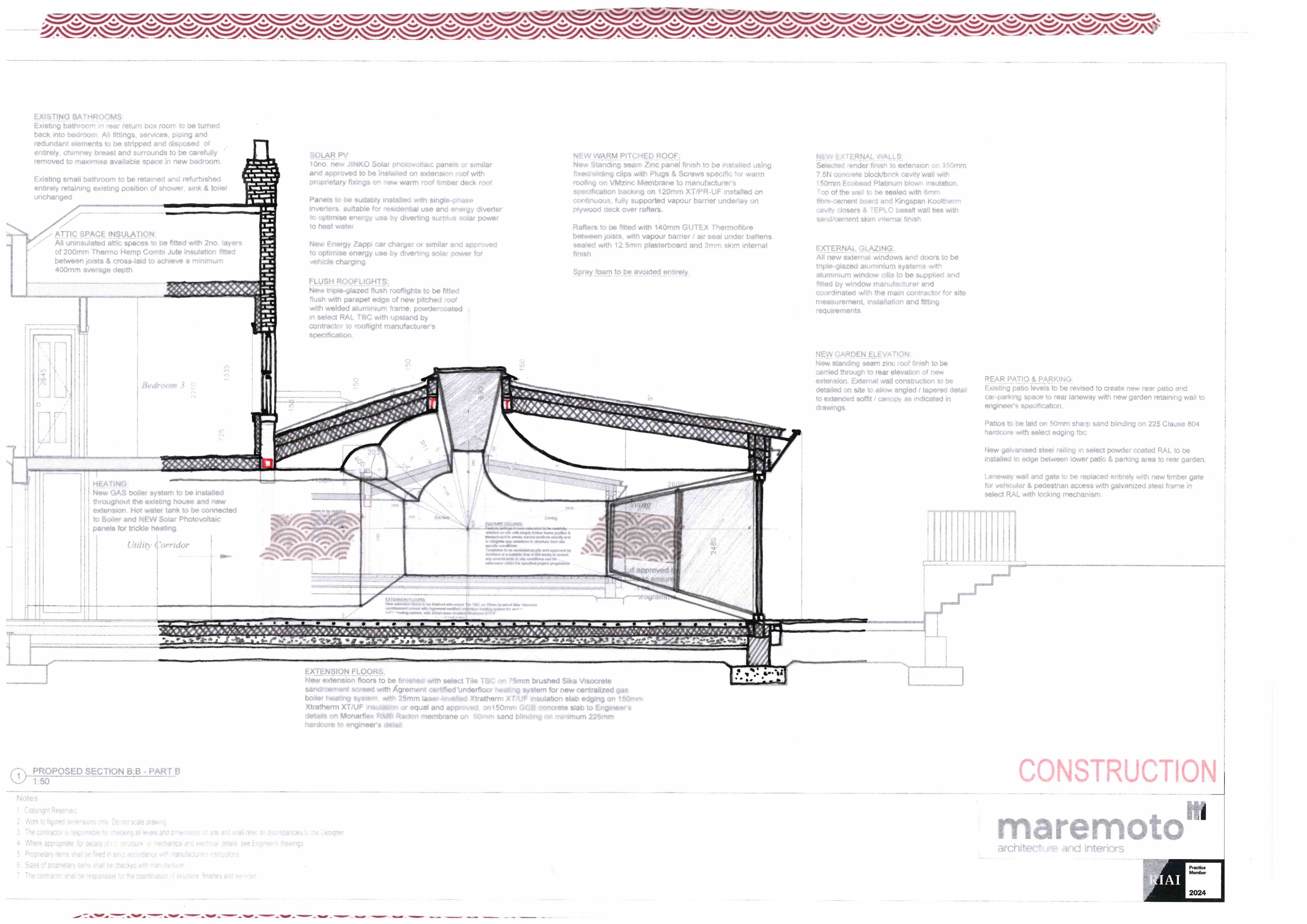 The project involves maremoto's whole-house approach with the total overhaul and improvement of the thermal performance of the building fabric, its mechanical and electrical services and the implementation of contemporary materials & techniques developed for traditional buildings including materials with hygroscopic properties like wood fibre insulation boards and lime plaster.